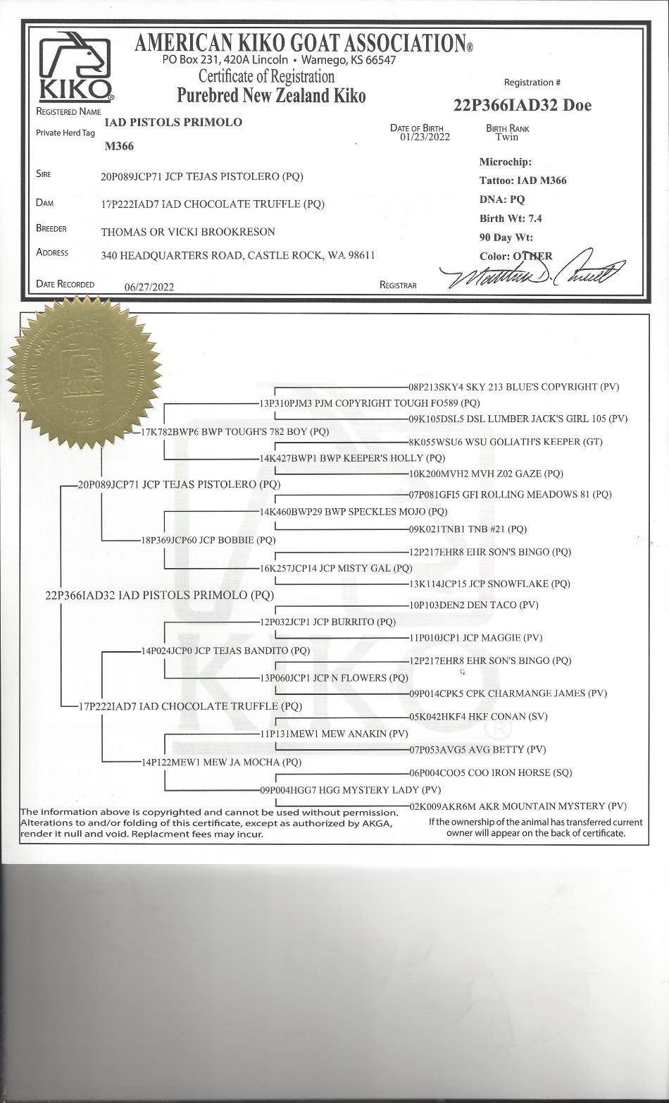 IAD Pistols Primolo AKGA & NKR reg 100% NZ ancestry Kidded 01/23/2022 DNA Verified |