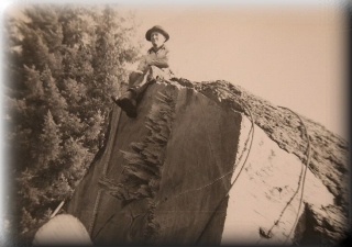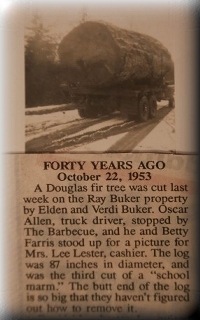 Verdi Buker sitting on a Huge Douglas Fir in the 1950s. |