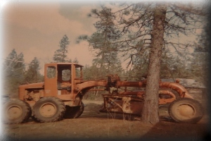 Elden Bukers grader in the 1950's. Used to improve the logging roads. |