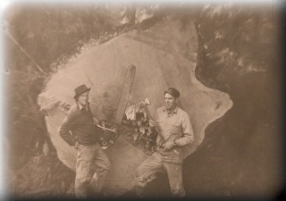 Verdi and Elden Buker father & son duo working side by side in the early 1950's on the Family Timberlands. |