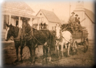 Hauling Cut Lumber in the early 1900's Floyd has the reins and Jesse is behind. |